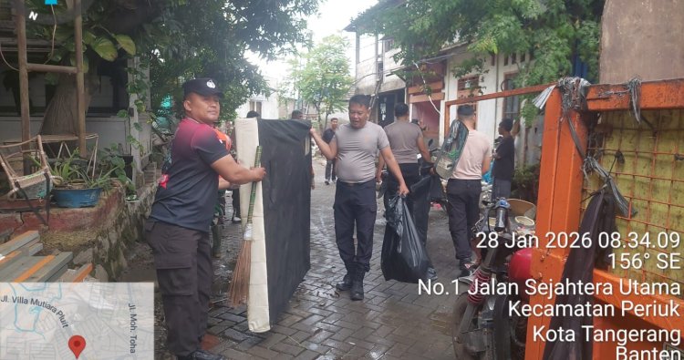 Tangerang - Sebagai upaya pencegahan banjir di wilayah rawan genangan, Polsek Jatiuwung Polres Metro Tangerang Kota bersama unsur TNI, Satpol PP, Dinas Lingkungan Hidup, Dinas Pemadam Kebakaran, Pemerintah Kecamatan dan Kelurahan, serta masyarakat melaksanakan kerja bakti massal di Perumahan Periuk Damai RW 08, Kel/Kec. Periuk, Kota Tangerang, Rabu (28/1/2026).